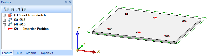 As already mentioned, the sheet in this example is to be inserted in such a way that the bottom left corner lies in the bottom left corner of the selected sketch area. Therefore, a Fitting CS must be defined for the Sheet Metal main part