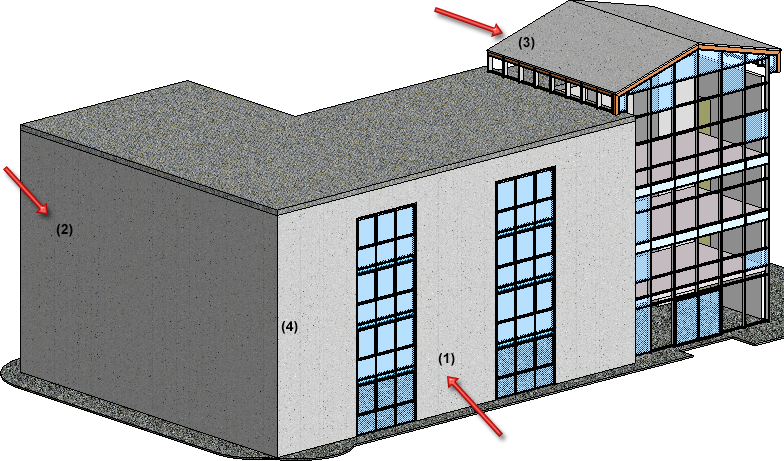 In the present example, elements are to be placed onto a facade as follows: