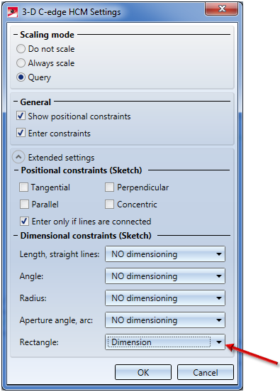 Please note that the parametric dimensions will only be displayed if the visibility settings for this type of dimensioning have been set accordingly. These can be specified via the Properties Parametric dimensions function in the context menu for parts. In this example you should select the If feature active option.