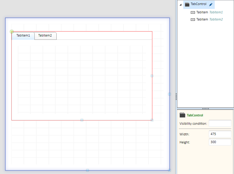 For each of these tabs a sub-ordinate GUI object of the type TabItem. Further GUI objects can be assigned to each tab, i.e. each TabItem.