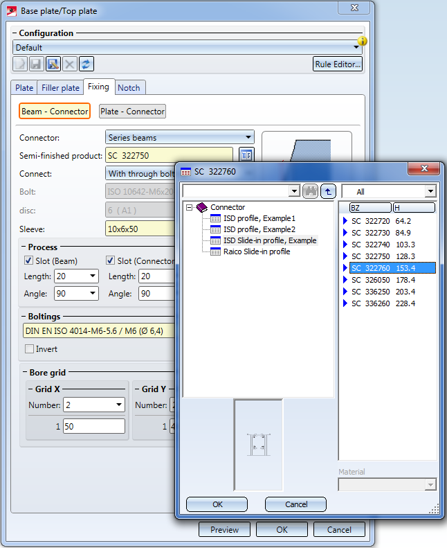 This Design Variant enables you to add a base or top plate connection to a series profile with only a few mouse clicks - complete with its associated individual parts and processings.