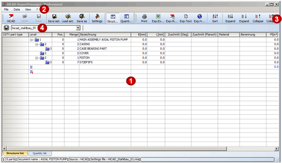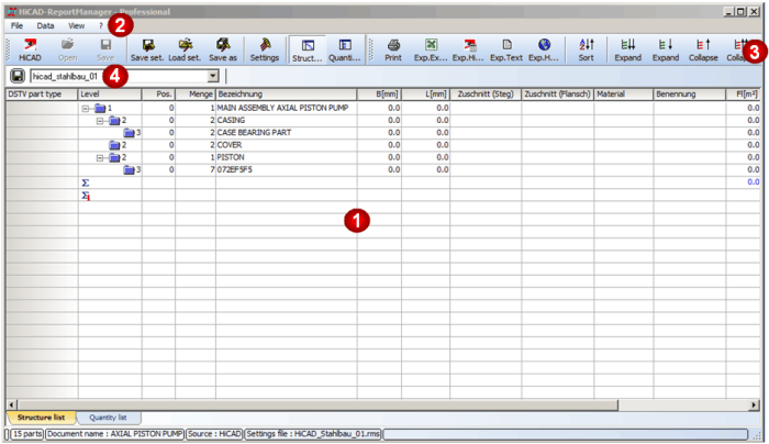 The User Interface of the Report Manager consists of the following areas: