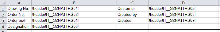 The remaining sheets of the template can be modified freely. Fixed texts (texts not beginning with "!") and logos and graphics in the header area will be preserved during BOM generation.