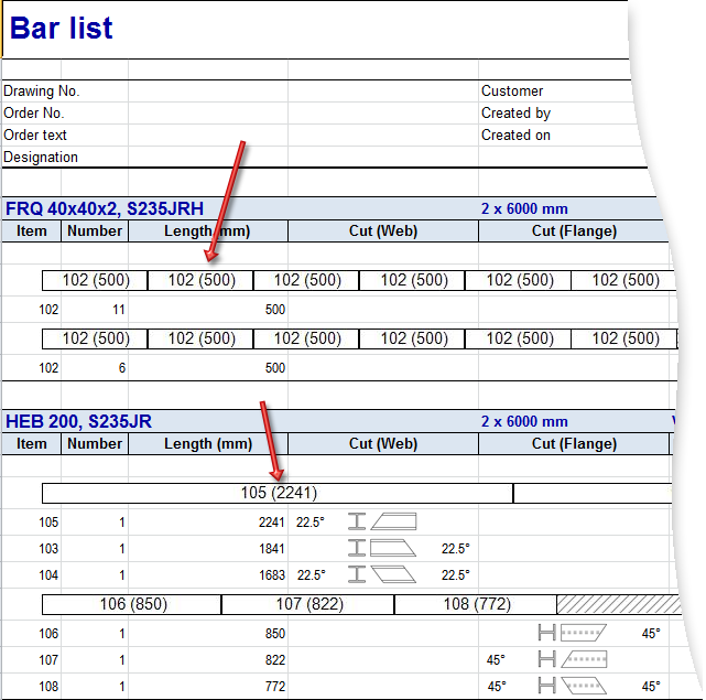 For the output of Steel Engineering bar lists, extended functions are available. These will apply to all table sheets for which the Class BarList or BarSummary has been set on the Settings sheet.