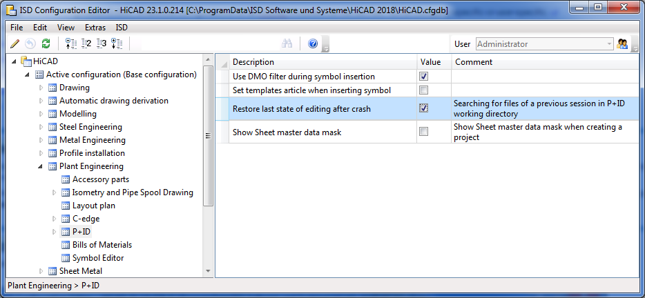 HiCAD uses a central Configuration Editor, where the configurations for all HiCAD modules can be defined - either company-specific or user specific.
