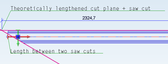 If you select Machine angle, the "lateral" angle between the top surface and the base surface of the beam will be output (highlighted in red in the image below). This setting is of importance for diagonally cut beams, as these beams have angle dimensions with different values.