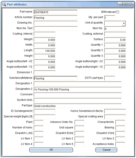 The images below show a flooring object derived from a sketch after selection of Part type: Solid construction, and the appropriate attribute mask.