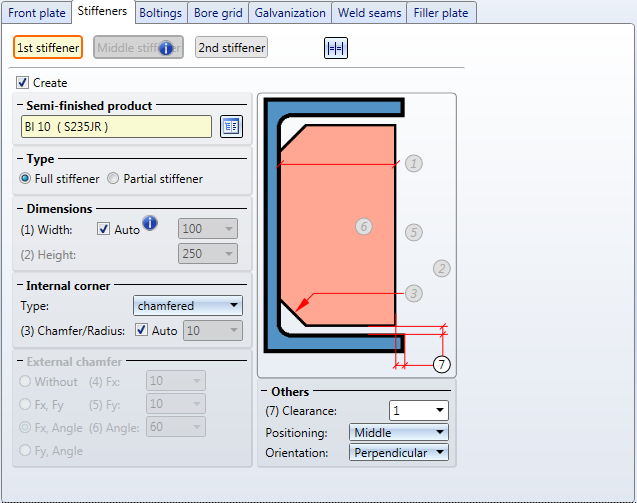 Partial stiffener: Specify the width of the stiffener, or activate the Specify the height of the stiffener. |