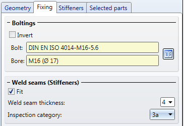 The stiffeners are welded onto the purlin or the girder. If you want to insert weld seams, activate the checkbox and enter the seam thickness.