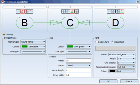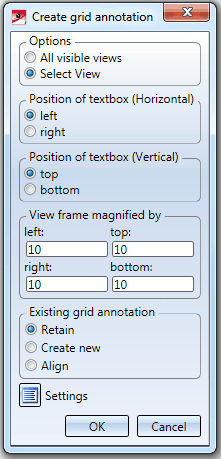 icon in the Create grid annotation to specify the settings for the grid annotation, e.g. the text, the representation of the symbol frame, the colour and the type of the annotation lines, font, font size, text colour etc.