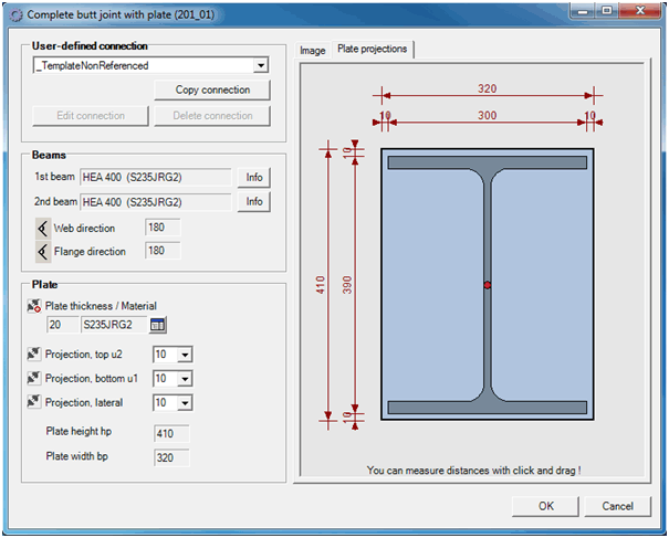 HiCAD automatically detects the plate height and width on the basis of the selected beams and the specified plate data.