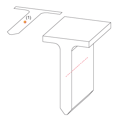 From a sketch (left) derived beam, (1) Point for beam axis