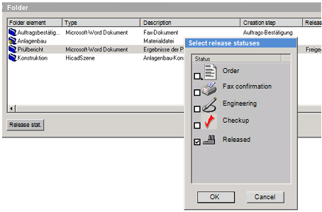 When the folder gets to the Workflow step where a document or a article will be created, it will be checked if a release status has been created for this document. For instance, you can determine for a folder that a document needs to be released to enable the execution of the next Workflow step.