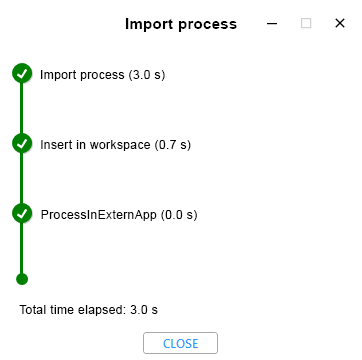 After executing the input dialogue with OK, a progress bar gives you further information on the stages the process goes through: object creation in HELiOS, insertion into the HELiOS workspace, replacement of local data and references in the CAD system with the corresponding HELiOS information and a final saving process.