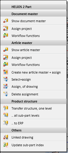 Use this function to transfer to the active part the article master which has been assigned to the drawing.