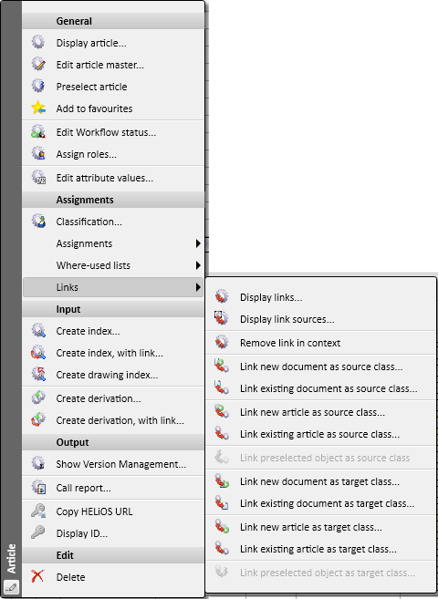 PDM Functions in HiCAD • HELiOS Desktop: Links • Article Master