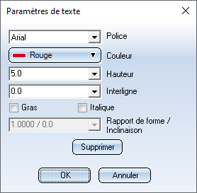 Sélectionnez les paramètres de votre choix, puis quittez la fenêtre Paramètres de texte par OK.