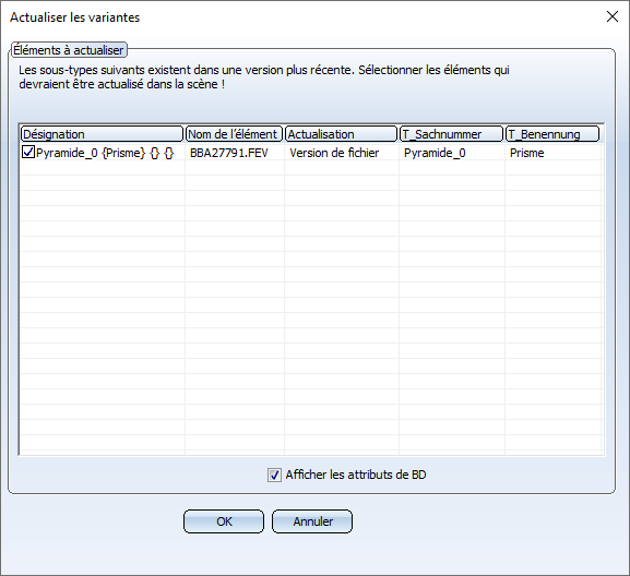 Avec la fonction Actualiser variantes d'élément sous Scène > Enreg./Référencer > Éditer var., vous pouvez également toujours exécuter cette actualisation ultérieurement.