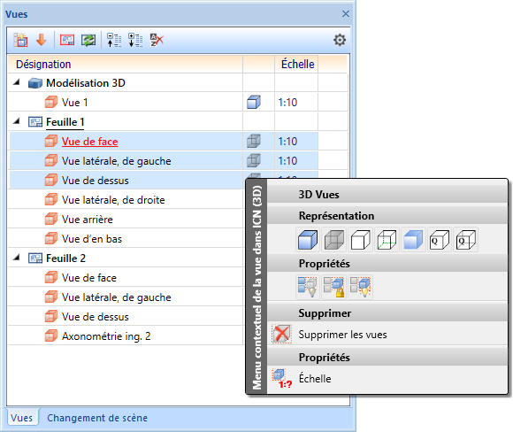 Vous avez également la possibilité de supprimer des vues individuellement en utilisant la fonction Supprimer les objets sous Scène > Supprimer.