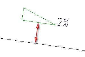Generally, down-grade symbols will suppress rise triangles. This means that no vertical rise triangle will be placed at a pipe section that has a down-grade symbol. If, though, the route of the section has an offset relative to the coordinate axes, a vertical rise triangle can still be created (provided that the corresponding setting has been specified.