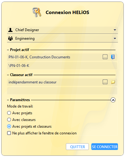 Dans le cas où HELiOS est utilisé en parallèle, une connexion est requise. La fenêtre d'identification diffère selon les versions HELiOS.