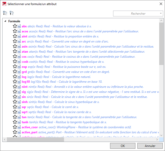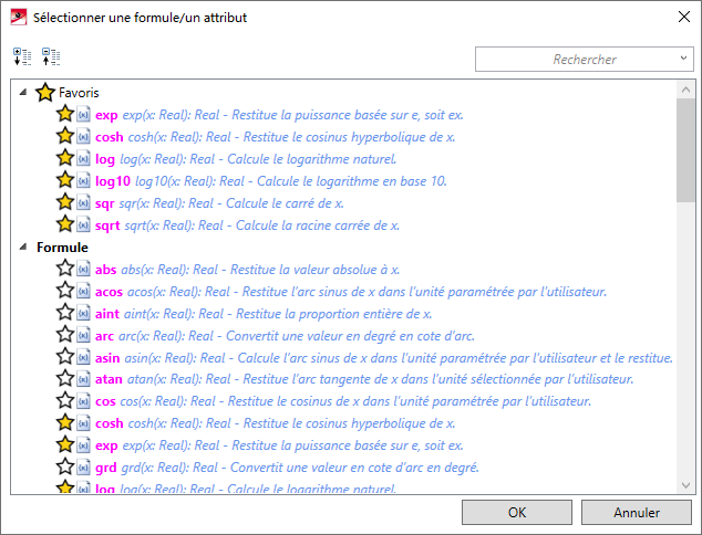 Au moyen du champ de recherche, en haut à droite de la fenêtre de dialogue, vous pouvez chercher une fonction/un attribut.