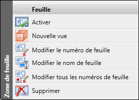 La feuille active est soulignée, la vue active est rouge et soulignée. Pour activer une vue ou une zone de modélisation ou de feuille, il suffit d'un clic gauche de la souris.