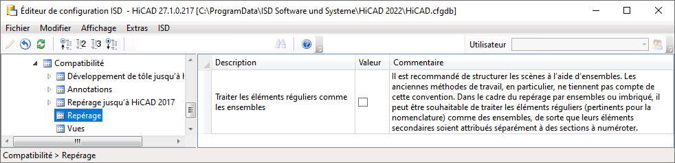 Option ajoutée pour le changement vers le repérage standard depuis HiCAD 2018