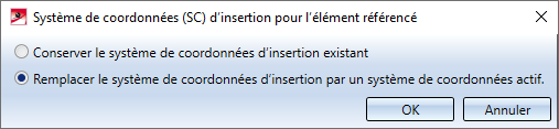 - La demande de confirmation pour choisir le système de coordonnées d'insertion apparaît maintenant avant la sélection du dossier mémoire. Cette demande n'apparaît que si un système de coordonnées d'insertion existe déjà au moment du référencement.