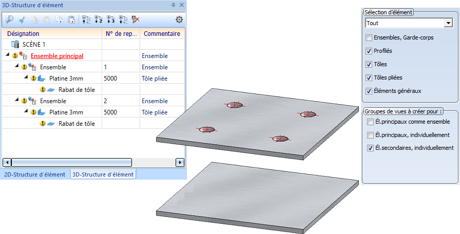 Avec HiCAD 2021, la possibilité de repérer les éléments qui sont dans la structure d'élément sont des éléments secondaires d'une tôle pliée a été supprimée. Cela s'est avéré cependant problématique pour certaines modélisations de nos clients. Par conséquent, ce mode de fonctionnement est restitué avec HiCAD 2022 SP1.