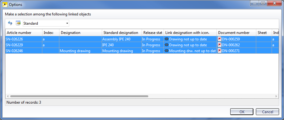 4. After closing the Text Editor, the status of all workshop, detail and mounting drawings belonging to the beam will be reset from "Released" to "In progress"The title block will obtain a corresponding note and the revision index will be set automatically.