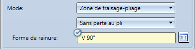 Zone de fraisage-pliage Zone de pliage avec l'outil sélectionné (fraisé à l'intérieur). |