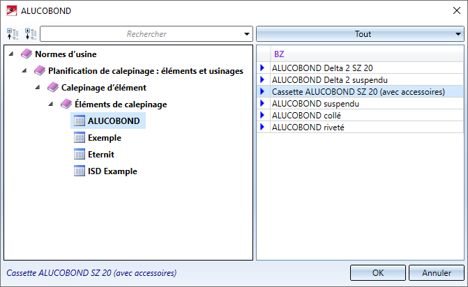 À l'insertion de cassettes ALUCOBOND SZ20 avec jonction de fenêtre, le "Profilé en L" n'est plus depuis HiCAD 2020 SP2 un composant propre de la cassette. Au lieu de cela, il n'apparaît qu'au moment de la connexion avec la sous-structure. C'est pourquoi il sera exécuté comme "pièce courte" à chaque sous-structure et non continu.