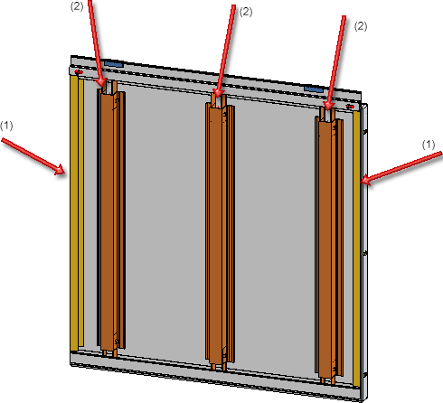 Cassette ALUCOBOND® SZ 20 - (1) Profilés de raidissage au bord, (2) Profilés de raidissage intérieur
