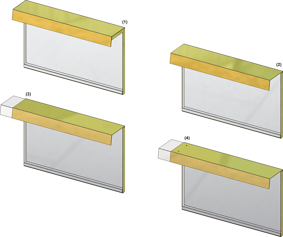 Cassette ALUCOBOND® SZ 20 - À gauche : Double repli. À droite : Jonction de fenêtre avec angle de jonction