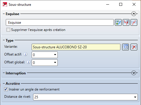 En cochant la case correspondante, vous pouvez spécifier si des vis doivent être créées pour la sous-structure.