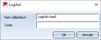 À la première utilisation d'une de ces fonctions, il vous sera éventuellement demandé dans HiCAD d'indiquer vos identifiants LogiKal.