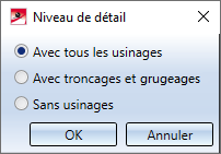 Sélectionner l'option Avec tous les usinages peut être utile lorsque des grugeages sont décrits par des perçages, mais elle exige une plus forte performance qu'avec troncages et grugeages ou sans usinages.