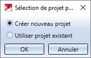 Vient ensuite une requête vous demandant de préciser si vous souhaitez travailler dans un projet existant ou commencer un nouveau projet.