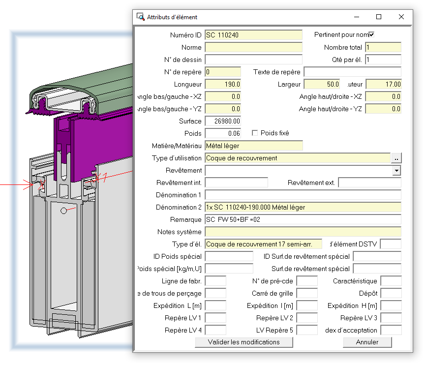 En outre, les types d'utilisation de HiCAD seront automatiquement attribués aux profilés LogiKal lors de l'importation.