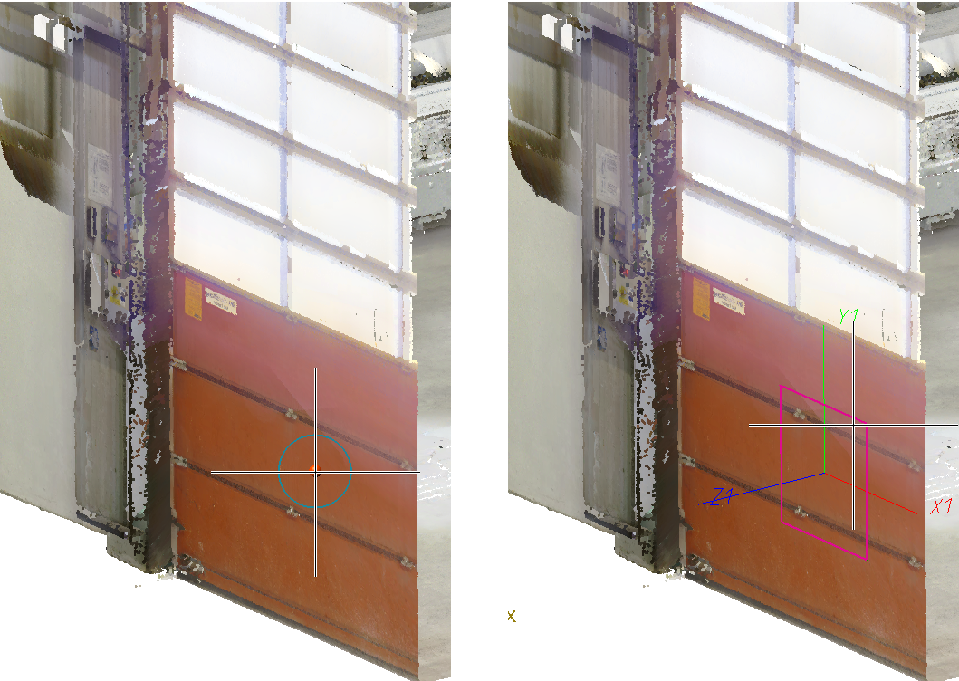 Cette fonction permet de poser un plan d’usinage directement dans un nuage de points. Le plan facilite la modification de la scène dans la vue spatiale, p. ex. lorsqu’on doit insérer une nouvelle construction dans un environnement ou construire une installation à l’intérieur d’une pièce.