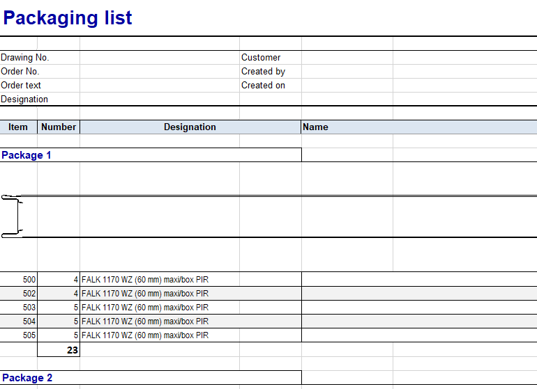 When exporting a packaging list for a profile installation to Excel, the profile cross-sections of the affected profiles are now displayed on the Packaging list spreadsheet.