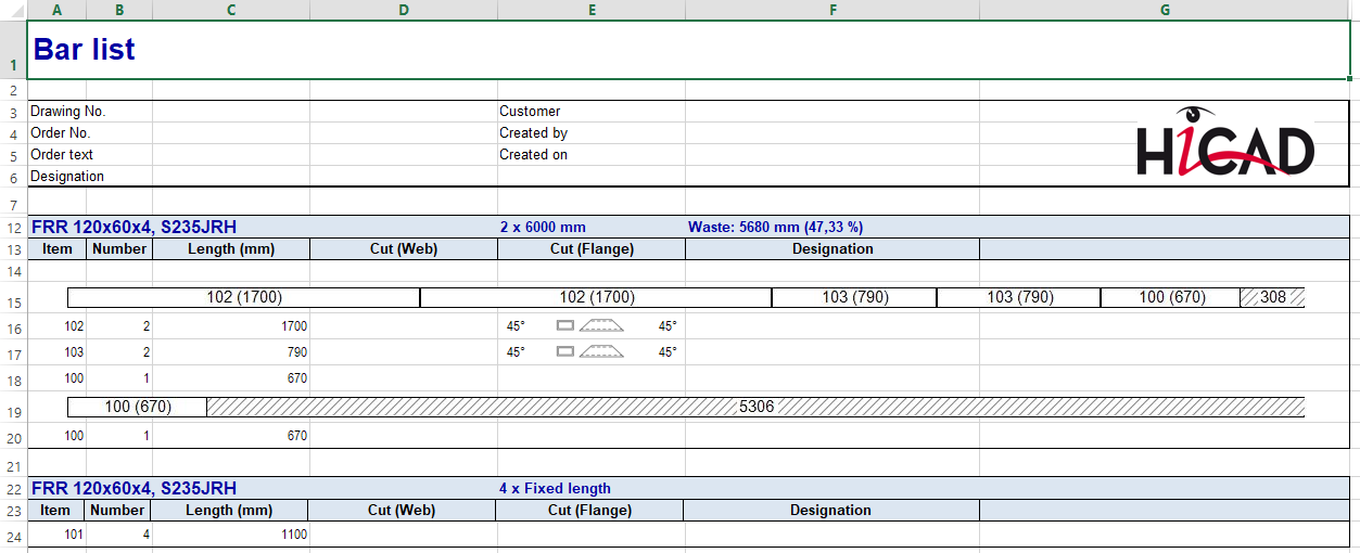 For this purpose, you must use the Report Manager configuration HiCAD_Stahlbau.2600.0.