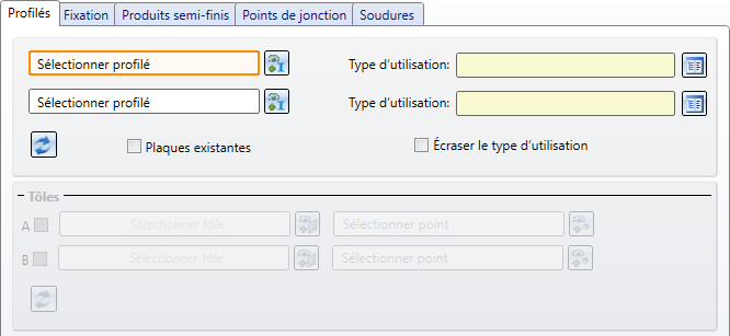 Les paramètres de cet onglet sont condamnés si des tôles ont été sélectionnées dans l'onglet Profilés.