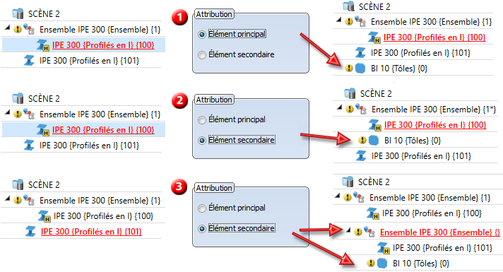 Si le profilé de référence appartient à un ensemble, la tôle sera alors également subordonnée à cet ensemble comme élément secondaire.
