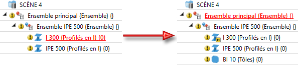 Si le profilé de référence appartient à un ensemble, le raidisseur sera alors également subordonné à cet ensemble comme élément secondaire.