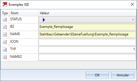 À la sauvegarde des éléments avec entrée de catalogue, vous pouvez attribuer à l'élément un type. Celui-ci sera pris en compte à l'insertion des éléments via le catalogue des pièces standardisées.
