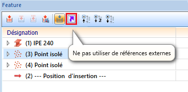 • Pour l'ensemble du poteau, le placement des éléments ne doit pas se baser sur les éléments ou les coordonnées absolues de l'ensemble. Il est préférable ici de définir le système de coordonnées d'insertion via le système de coordonnées d'élément d'un des éléments.
