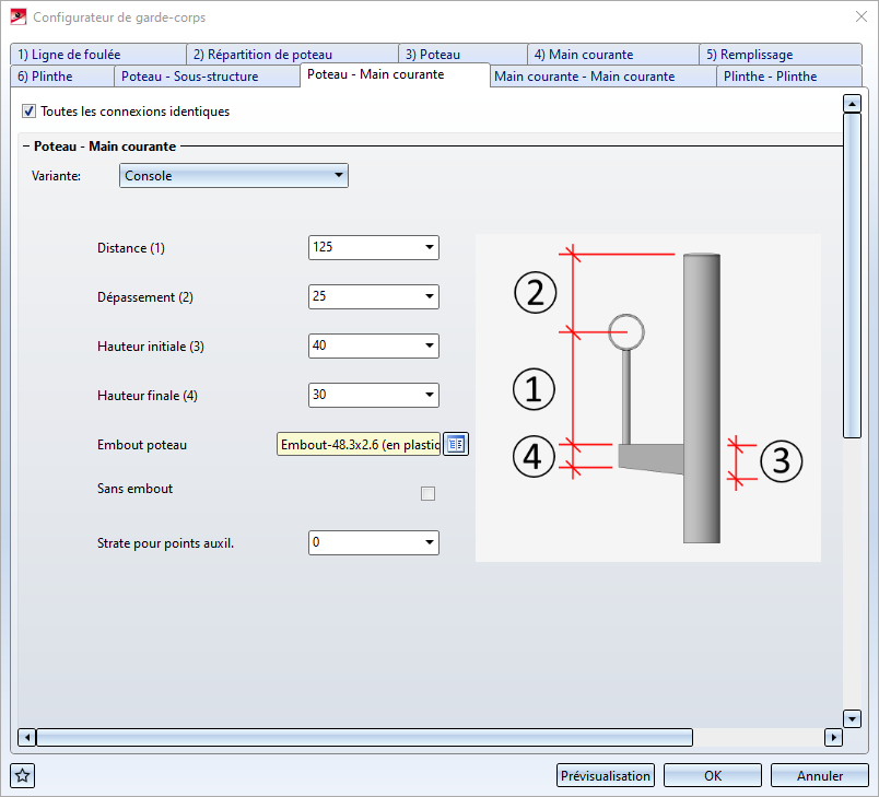 Éditeur pour variantes de garde-corpsEscaliers et garde-corps (CM 3D)Fonctions de la Charpente métallique