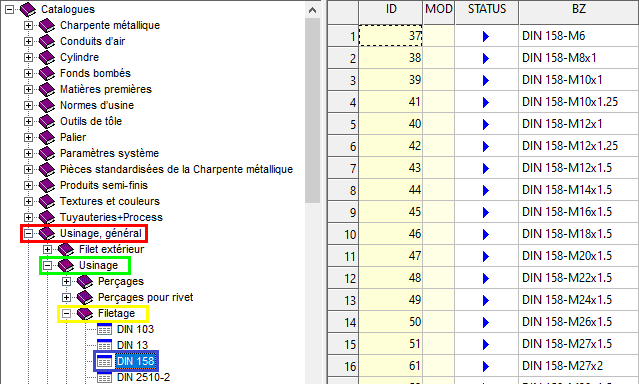 Catalogues des usinages normés